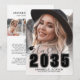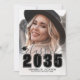 Classic Modern Graduation Announcement. The front features a full-page photo with a white gradient at the bottom that fades seamlessly into the image. Over the gradient, "2026" appears in bold black classic school-style font. Just above it, "Class of" is written in elegant gray script. To the left of the year is a small, customizable graduation cap icon in black. Below the year, the graduate's name and school name are prominently displayed in black. All colors can be customized to match school colors or personal preferences.