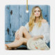 at christmass as a hanging decration for the chritmass tree.. its white porcline or cramic but very well made with added photo on one side.. also has a lovley red bag to keep it in.. execlent printed text in bold and black stands out well aganst the blue background of the photo.