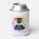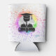 Can cooler has graduation theme cap and gown, with a watercolor inspired splattered background, you add your name. HAMbyWhiteGlove aka HAMbWG