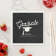 Modern black and white graduate paper napkins for the high school or college graduate. The word "Graduate" is written in an elegant handwritten script font. A white (customisable colour) graduation cap sits in the middle. Personalised with the name of the graduate, their school name, and graduation year. The colours on these paper napkins can be customised to match your school colours. Contact me for assistance with your customisations or to request additional matching or coordinating Zazzle products for your event.