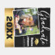 Create a modern comfy fleece blanket of the graduate to commemorate their achievement. Featuring a black background that can be changed to any colour, a faux gold mortarboard (graduation cap), name, class year and place of study. This is a perfect keepsake gift for taking those memories with them as they start their next adventure. PHOTO TIP: Crop and size your photos into a square shape or with the subject in the middle BEFORE uploading for fastest, easiest results.