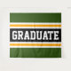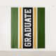 This sporty, athletic design features bold GRADUATE text inside a highlighted wide black stripe with double white and yellow orange racing stripes against forest green outer stripes. The text in this design can be personalised.