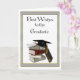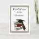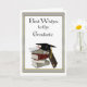 Congratulation graduate card. Black cap and diploma on stack of books.