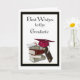 Congratulation graduate card. Red cap and diploma on stack of books.