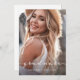 This simple and stylish Class of 2023 graduation announcement says "graduate" in delicate, white elegant modern script with your favourite personal photo across the front of the card. Further information about the grad can go on the back, with a minimalist black and white design.