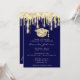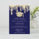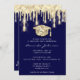 Graduate Drips Gold Cap 3D Glam Blue Navy Invitation