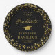 Graduate Elegant Gold Confetti On Black Graduation Paper Plate