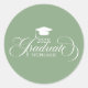Graduate: an elegant white script typography on a sage green background with a personalizable name and year.