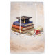 Make your graduation gift even more meaningful with this inspirational graduation gift bag. Featuring a charming illustration of stacked books, a graduation cap, and a rolled diploma tied with a ribbon, this thoughtful design celebrates the journey of learning and achievement.