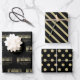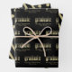 This design features a graduation graduate grad party gift, a gold block typography text font, a modern elegant class of senior, a gold black striped polka dots, a custom customised personalised gift, graduation gift wrap wrapping supplies, stylish trendy wrapping supplies, a simple minimalist minimal typography, a cute gender neutral wrapping paper, for high school or college graduate