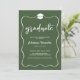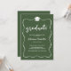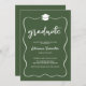 Graduate Hat Modern Cute Ribbon Frame Green Invitation