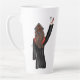 Graduate with brown hair in black cap and gown holding a diploma fashion illustration on a mug. Cute mug for senior students. Perfect mug for female graduates of high schools and colleges. Great mug for graduation gifts. Give this special mug to your sister, friend, or girlfriend. It represents a big accomplishment.