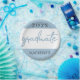 Chic graduation party overlay template with accents in a sophisticated white and robin egg blue palette. The design features a trendy blue hand-lettered brush script “graduate” typography on a white background along with the grad’s name and graduation year. Great way to honour your elementary middle school, high school, or college grad! #classof2019 #bound