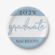 Graduate Light Blue Script | Robin Egg Brush Paper Plate