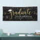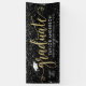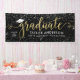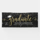 Elegant and glamourous custom graduation banner sign celebrates your grad in style! Design features a grad cap, "Graduate" in modern faux gold foil script, and modern custom text that can be personalised with the graduate's name, class year, and school. Includes a border of sparkling silver and white confetti. Black background colour can be modified.