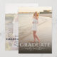 This design features a graduate announcement, with a 2 photo template, a modern minimalist design, perfect for high school or college, a trendy script, with simple, elegant typography, stylish calligraphy script and graduation party details.