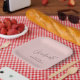 This modern graduation paper plates feature trendy, handwritten-style typography and space for the graduate’s name on a dusty pink background.