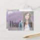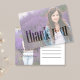 This design features a graduate thank you postcard template, with cool typography design, a stylish, trendy, modern, 2 photo template, with simple thanks, a simple postcard great for high school or college thank you card.