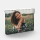 An elegant graduation photo block featuring a full senior portrait with Graduate in delicate white script accompanied by the graduate's name, school, and class year in refined type. The soft script overlay creates a sophisticated, feminine keepsake. Customise with a favourite portrait and details for a personalised graduation gift that celebrates your senior in style.