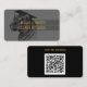Create personalised graduate name cards. The front of the card features a tiger grad design with your desired name and class year. The back of the card has a QR code you can use for your website. Black and gold colour hues. Use the template to personalise.
