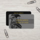 Create personalised graduate name cards. The front of the card features an eagle grad design with your desired name and class year. The back of the card has a QR code you can use for your website. Black and gold colour hues. Use the template to personalise.