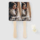 This paddle fan is shown with a sample photo print of a graduate, customize and change the photo to yours.