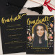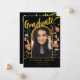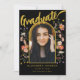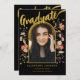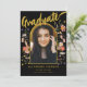 Graduate Photo Floral Arch Black and Gold Script Announcement