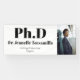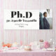 A banner that celebrates a PhD graduate with words and a picture. This minimalist design has a white and black colour scheme. The photo is a template that is meant to be swapped out for your own. Add your photo and text, add it to your cart, then use it to celebrate the graduate!