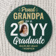 Show your joy for the graduating senior with a stylish custom photo "Proud Grandpa" round graduation button. The picture and text on this template are simple to personalize. The colors and font styles can be changed with the Zazzle Design Editor tool. Customize this button for any family member or friend, such as mom, dad, grandma, nana, grandpa, sibling, parent, aunt, uncle, sister, brother, cousin etc. Featuring elegant modern typography and stylish calligraphy script, the green and gold design includes the graduate's photo, name, and class year. Please note that the gold is printed color, not metallic foil. This keepsake accessory adds a unique touch to a commencement ceremony or graduation party outfit. Congratulations to the graduate!