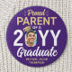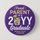 Show your joy for the graduating senior with a stylish custom photo "Proud Parent" round graduation button. The picture and text on this template are simple to personalize. The colors and font styles can be changed with the Zazzle Design Editor tool. Customize this button for any family member or friend, such as mom, dad, grandma, nana, grandpa, sibling, parent, aunt, uncle, sister, brother, cousin etc. Featuring elegant modern typography and stylish calligraphy script, the purple and gold design includes the graduate's photo, name, and class year. Please note that the gold is printed color, not metallic foil. This keepsake accessory adds a unique touch to a commencement ceremony or graduation party outfit. Congratulations to the graduate!