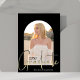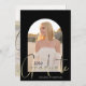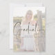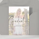 This design features a graduate announcement card with a 2 photo template, modern minimalist, perfect for high school or college, elegant typography, with black and gold, simple, trendy script, class of 2024, graduation picture