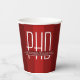 PhD graduation party paper cups with a red and white colour scheme. Simply customise the graduate’s name, add these cups to your cart, and celebrate this major accomplishment.