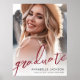 This simple and minimalist graduation party sign features a full-page photo of the graduate with “Graduate” displayed in bold red handwritten script across the bottom. Below it, the graduate’s name, “Class of 2026,” and the school name appear in clean black fonts over a soft white gradient that fades seamlessly into the image, ensuring everything is clear and easy to read.