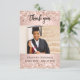 A rose gold background decorated with confetti. Personalise and add your photo and thank you note.