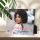 A stunning graduation plaque featuring a full senior portrait with Graduate in flowing rose gold script, the graduate's name, school, and class year in coordinating type. The soft metallic script creates a beautiful feminine accent against any photo. Customise with a favourite portrait and details for a personalised tabletop keepsake or meaningful graduation gift.