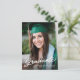 With a simple script "graduate" in a modern handwritten style, this one photo graduation announcement and invitation is the perfect way to celebrate your grad. Featuring a vertical photo on the front with white type, this design also has room on the neutral slate grey back to include all your graduation party details. It's a stylish graduation design perfect for girls and guys and works well for high school graduation and college graduates. Find more styles in the collection by Lea Delaveris Design.