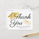 Custom graduation thank you postcard with faux gold foil graduation cap or mortarboard and diploma and elegant calligraphy script THANK YOU typography design and personalised with the graduate's name and class year on the front and the option to preprint a message on the back or delete the sample text to leave the area blank for handwriting notes of appreciation. ASSISTANCE: For help with design modification or personalisation, colour change, resizing, transferring the design to another product or if you would like coordinating items, contact the designer BEFORE ORDERING via the Zazzle Chat MESSAGE tab or email makeitaboutyoustore@gmail.com.