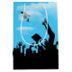 Graduates silhouette crowd with tossed cap in the sky for graduate.