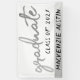Stylish graduation party overlay template with accents in an elegant white and a silvery faux metallic chrome palette. The design features a chic silver grey hand-lettered brush script “graduate” typography on a white background along with the grad’s name and graduation year. Great way to honour your elementary middle school, high school, or college grad! #Classof2019 #bound