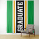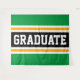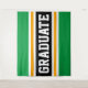 This sporty, athletic design features bold GRADUATE text inside a highlighted wide black stripe with double white and yellow orange racing stripes against bright green outer stripes. The text in this design can be personalised.