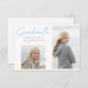 Graduate Stylish Blue Smooth Script 2-Photo Announcement