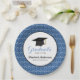 Graduate Swirl Pattern on Blue Graduation Party Paper Plate