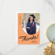 A graduate thank you card featuring a vertical photo with an arched edge. Personalise this light orange and black card with your own message of gratitude or use the one shown.