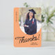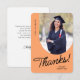 A graduate thank you card featuring a vertical photo with an arched edge. Personalise this light orange and black card with your own message of gratitude or use the one shown.