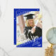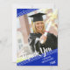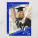 Simple, clean white lines against a royal blue background and muted stars with a brush script title THANK YOU and graduation year accent your graduate's name and one of their photos. The back features a stars pattern and a place to type in a generic thank-you message (you can delete the sample text to leave blank for personal handwritten messages) on a royal blue background.
