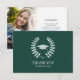 This design features a graduate, photo, thank you card, with a classic style, great for high school or college, simple, minimalist, dark green and white, with a custom message, class of 2024