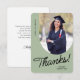 A graduate thank you card featuring a vertical photo with an arched edge. Personalise this sage green and black card with your own message of gratitude or use the one shown.