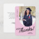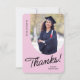 A graduate thank you card featuring a vertical photo with an arched edge. Personalise this light pink and black card with your own message of gratitude or use the one shown.