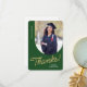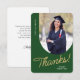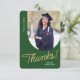 This flat graduate thank you card features a vertical photo with an arched edge. Personalise this dark green and gold thank you card with your own message or use the one shown.