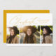 This three photo graduation announcement and invitation is the perfect way to celebrate your graduate. With an modern and elegant script "graduate" in a golden yellow and underlined, this design also features room for personalisation including name, school and year. The back is a matching gold with a subtle dash pattern to match the underline on the front and includes room for graduation party invitation text. This stylishyellow gold graduation announcement works well for a high school graduate or a college graduate. Other colours and styles available in the collection.